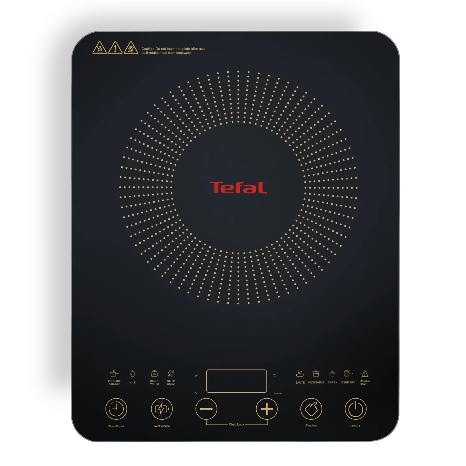 Elegant, powerful, and intelligently designed, the Tefal EVERYDAY SLIM IH 2200W is built for modern households seeking both performance and aesthetics. With its 2200W high-power efficiency and 8 preset menus, this slim induction cooktop ensures quick meals with less energy. The smart sense technology and child lock function enhance safety, while the full-glass panel and feather touch keys bring a premium touch to your kitchen. Whether it’s daily dal or gourmet stir-fry, this cooktop adapts with speed and style.