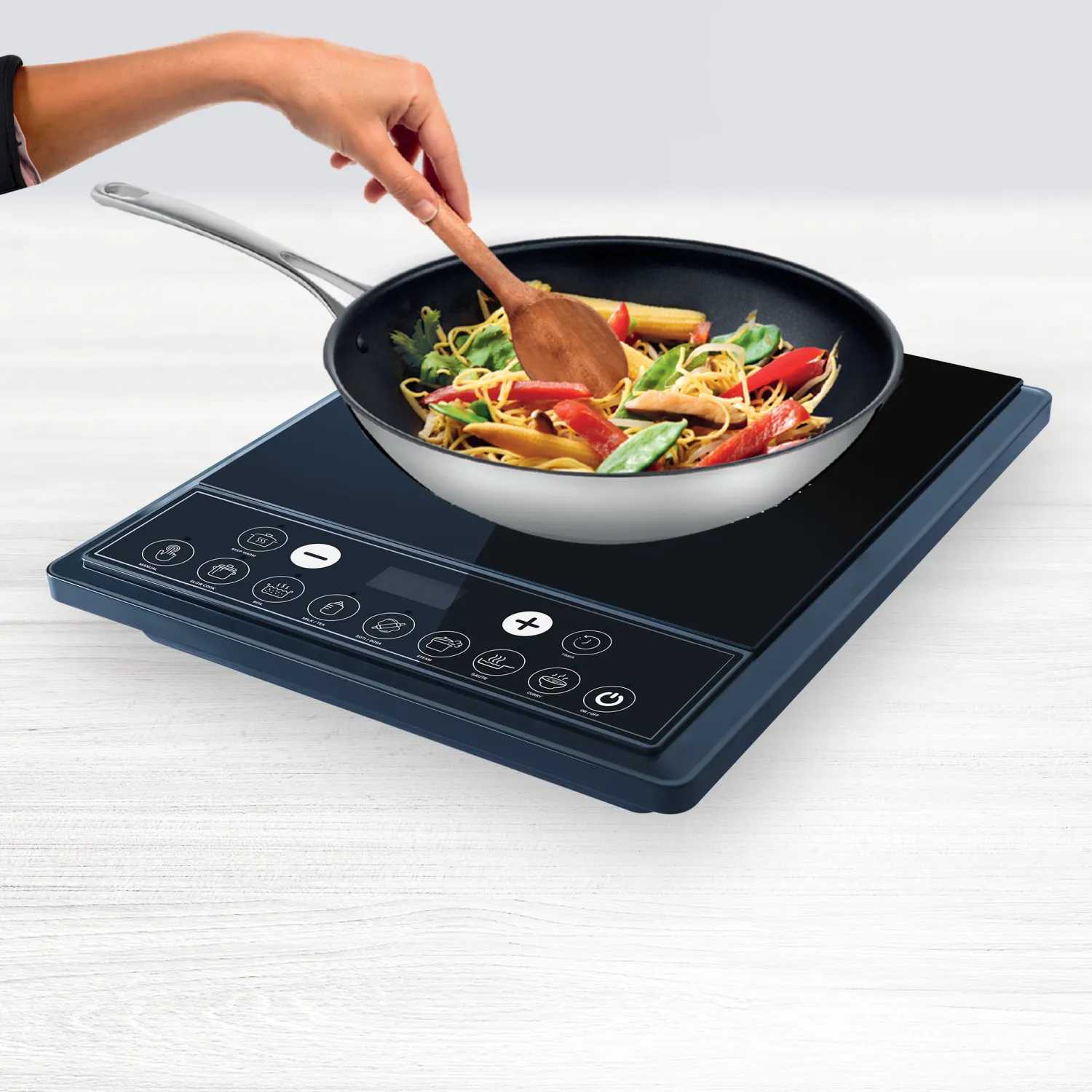 The Tefal EXPRESS IH 1600W is your kitchen companion for quick, efficient, and mess-free cooking. Powered with 1600W for optimal performance, it has 9 preset menus tailored for Indian cooking, soft-touch buttons, and an easy-to-clean polished glass surface. Designed with smart features like auto pan detection and 4KV surge protection, it brings you a safe, reliable, and energy-efficient cooking experience. Whether you're simmering curries or boiling milk, this cooktop simplifies your culinary tasks with convenience and control.