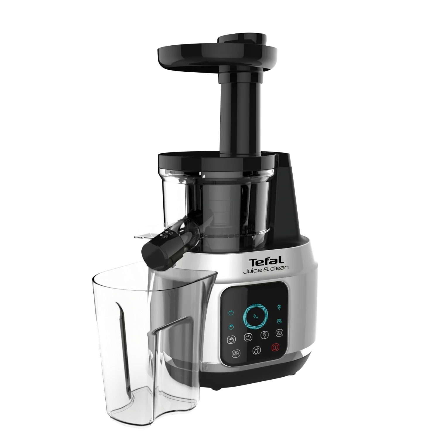 Experience effortless juicing with the Tefal Juice & Clean Slow Juicer, designed to deliver maximum nutrition with minimal clean-up. Its EasyClean technology saves time by simplifying maintenance, while the intuitive touchscreen panel offers four smart programs for soft or hard ingredients, ice creams, and coulis. The cold press technology preserves natural flavors, colors, and nutrients for healthier results. With two versatile filters and adjustable pulp control, enjoy juices, jams, or desserts just the way you like. Additional features include a drip-stop system, quiet operation, dishwasher-safe parts, and a compact, elegant design for convenient storage. Enjoy pure, delicious juice every day—with all the benefits and none of the hassle.